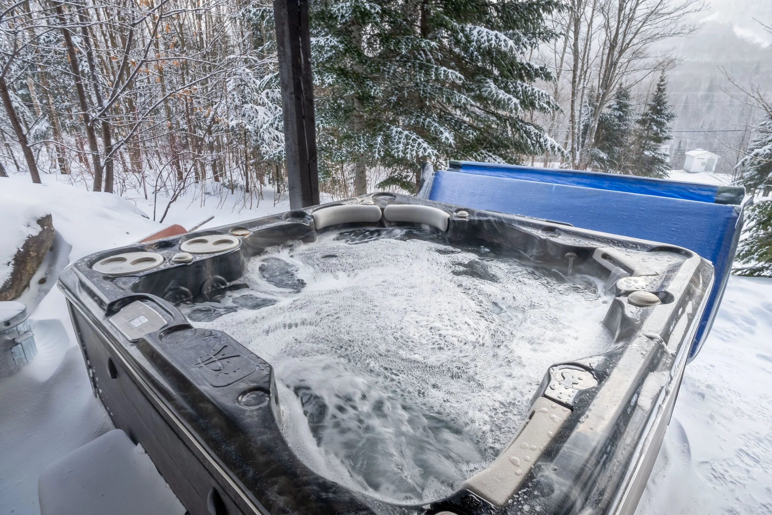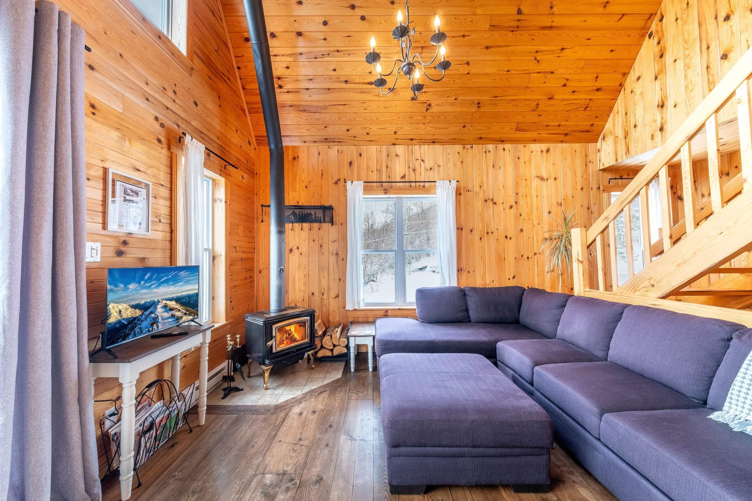 Commodités et équipements principaux : 🛁 Spa Hydropool 6 personnes, 🍳 Cuisine entièrement équipée, ☕ Cafetière Keurig et bouilloire électrique (café non inclus), 🔥 Salon confortable avec poêle à bois intérieur, 📺 Télévision avec dispositif intelligent, 📶 Wi-Fi haute vitesse, 🧺 Laveuse et sécheuse GE résidentielles + séchoir à linge, 👶 Équipements pour enfants : vaisselle pour enfants, 🔥 Poêle à bois intérieur, 🎲 Jeux de société et Babyfoot