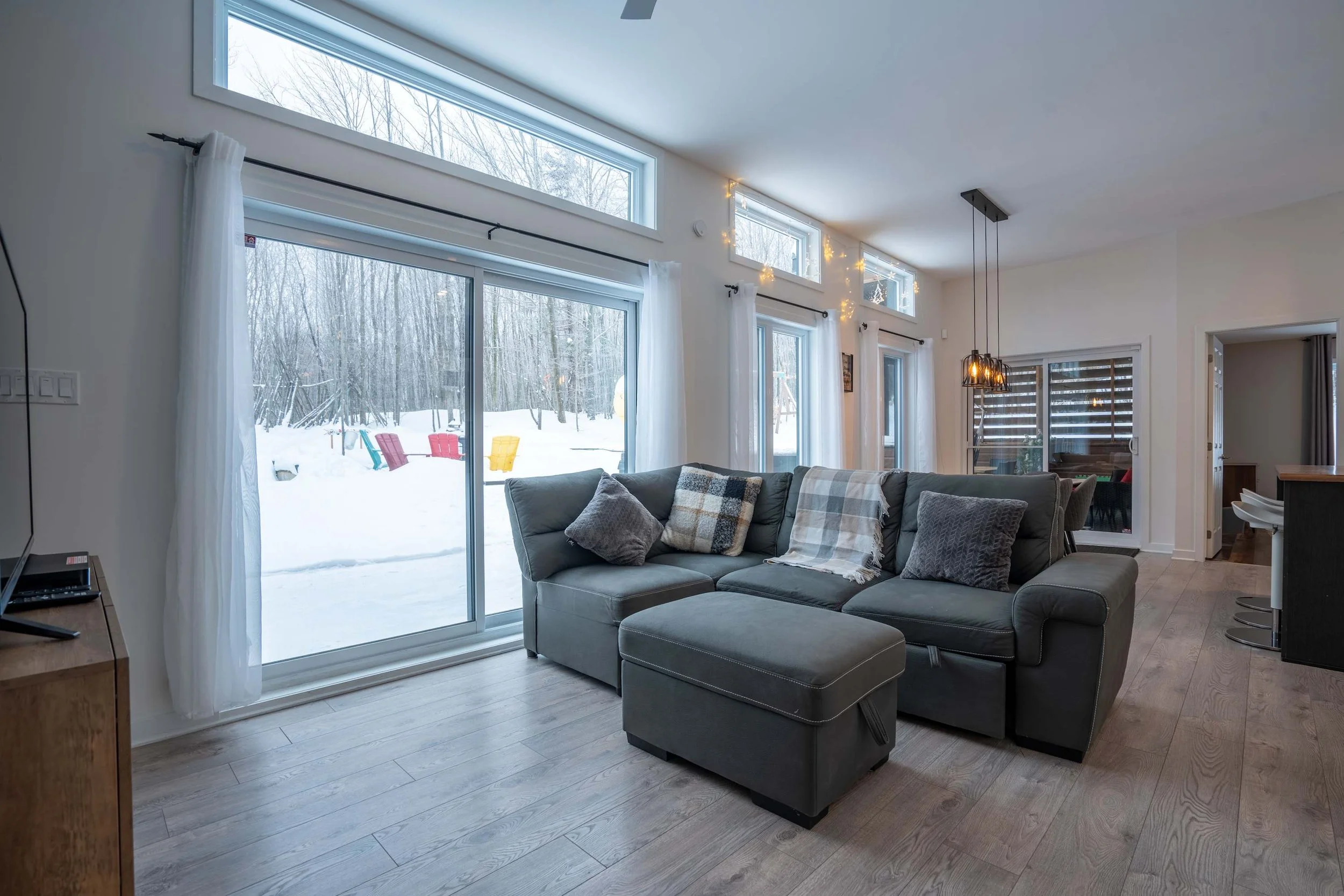 Avec ce somptueux chalet, nous voulons vous offrir l’opportunité de vous créer de sublimes souvenirs qui resteront à jamais gravés dans vos mémoires, de beaux moments avec ceux qui vous sont chers! Pour un séjour inoubliable, voici le conseil essentiel : Oubliez vos courriels et votre cellulaire. Fermez tout ce qui vous rattache à votre routine et au travail. Le seul objectif que vous devez atteindre est de vous amuser! Alors allez-y! Prenez place à la mezzanine, choisissez votre couleur favorite pour l’éclairage et profitez du panorama incomparable. Vous passerez une soirée magique, c’est garanti!