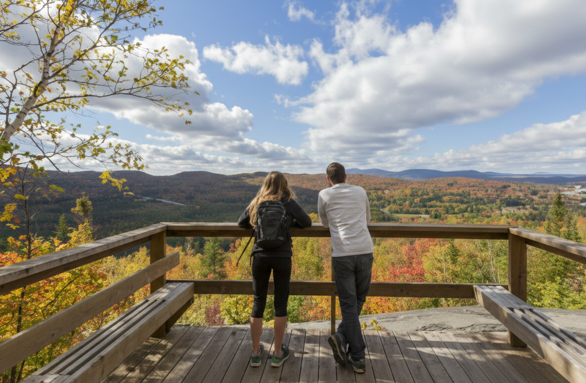 Accessible à tous les niveaux, ce sentier offre une immersion en forêt avec des sections boisées et des points de vue sur les lacs et les montagnes environnantes. Parfait pour une balade en famille ou une sortie sportive, le sentier permet d’observer la faune locale et de profiter du calme de la nature.